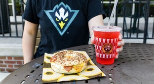 Einsteins Bagels is located in the Fisher Student Center, overlooking the beautiful UNCW campus commons. This location offers a café-style bagel shop known for its fresh-baked bagels, signature shmears, and delicious coffee options. This is the perfect go-to spot for breakfast and lunch favorites on the UNCW campus!